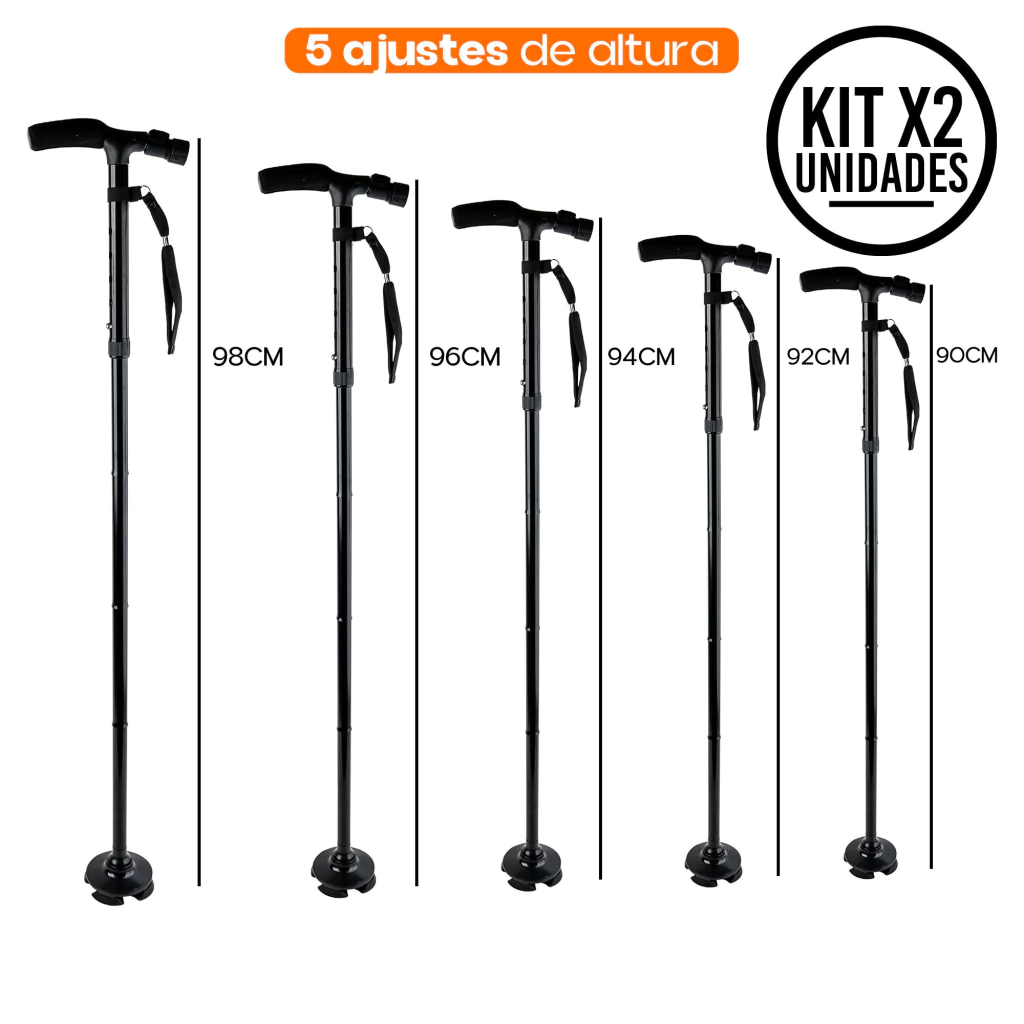 2 bastones ortopédicos plegables con luz LED, cada uno con: