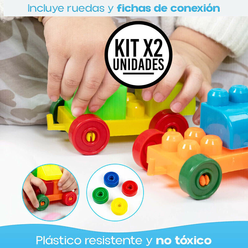 2 sets de 132 piezas de bloques de construcción en variados tamaños y colores.