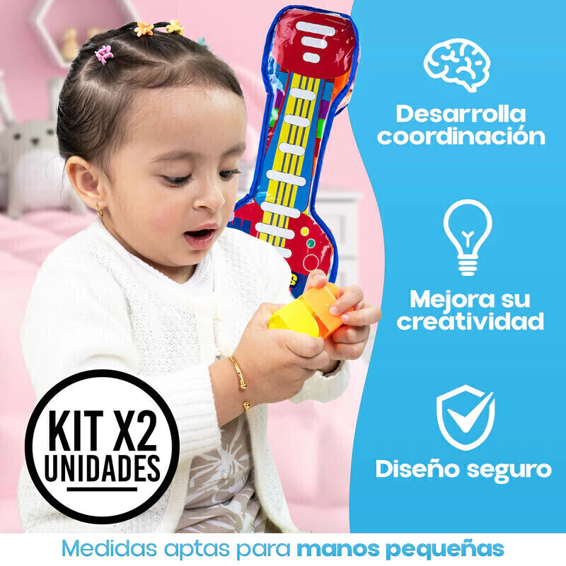 ¡Diversión y creatividad aseguradas por partida doble! El Set x2 Bloques Construcción 132 Piezas Maleta Guitarra Infantil es el compañero perfecto para que los niños mayores de 3 años den rienda suelta a su imaginación. Con fichas grandes, coloridas y fáciles de manipular, este set estimula el juego creativo en cualquier lugar, gracias a su práctica maleta en forma de guitarra.