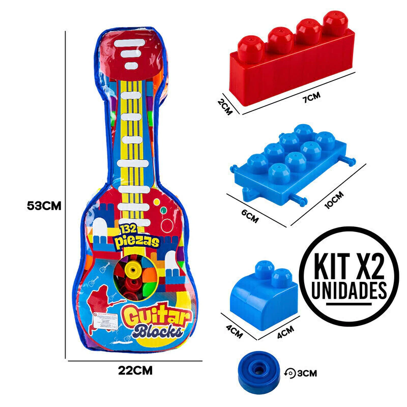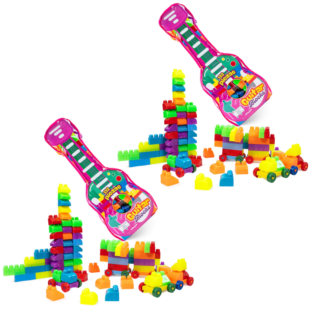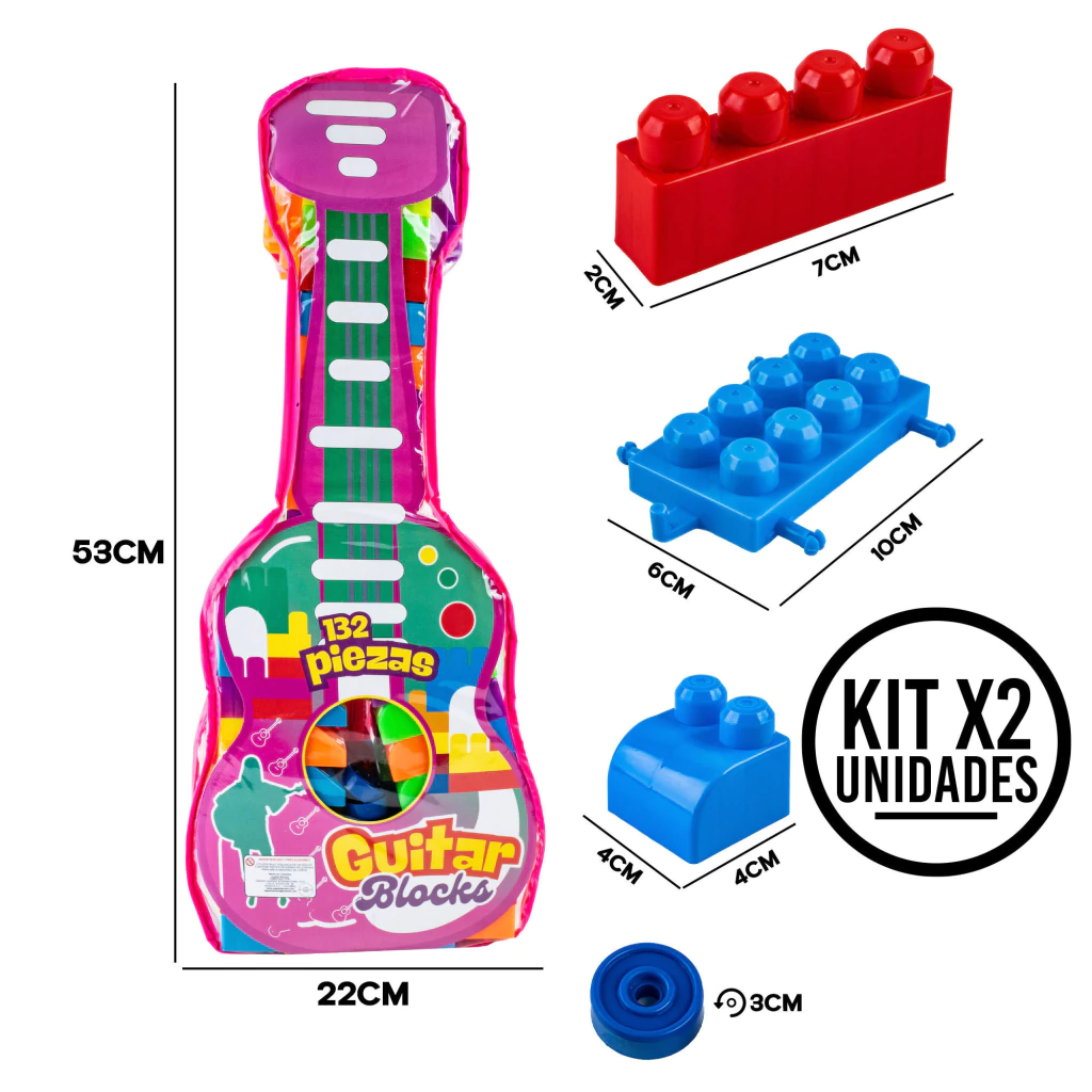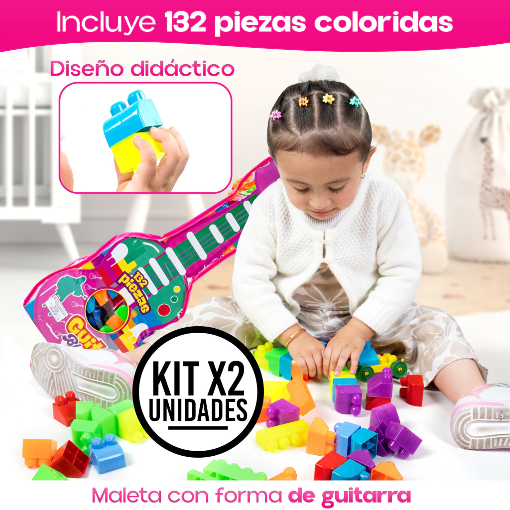 Set x2 Bloques Construcción 132 Piezas Maleta Guitarra: