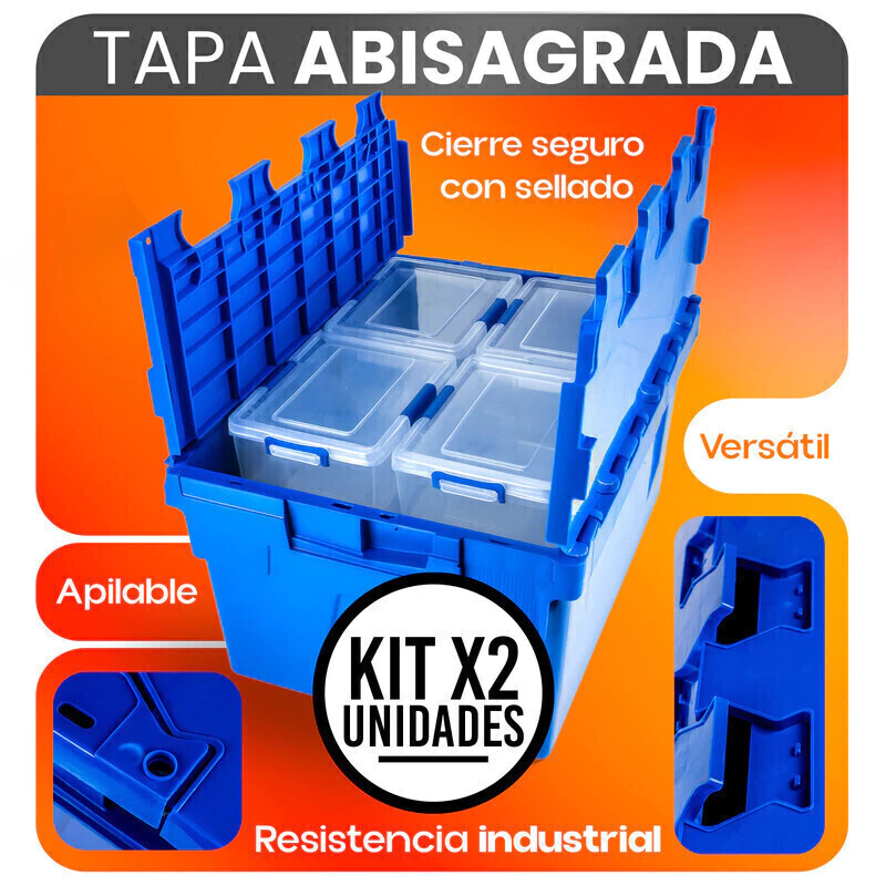 2 cajas plásticas de seguridad con tapa abisagrada integrada (40 x 29 x 20 cm) – color azul intenso