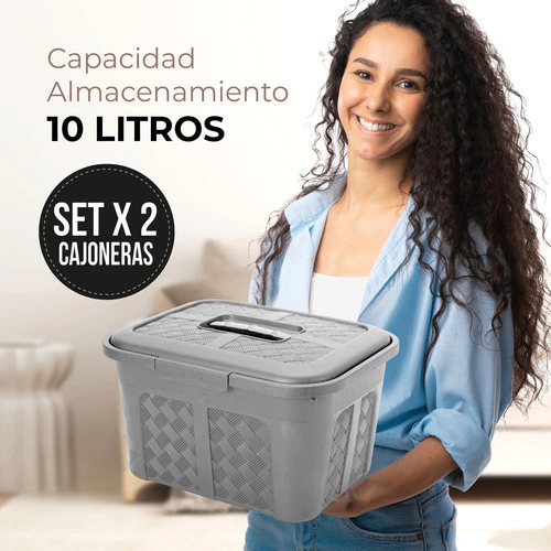 2 cajoneras plásticas organizadoras con tapa de 10 Litros.