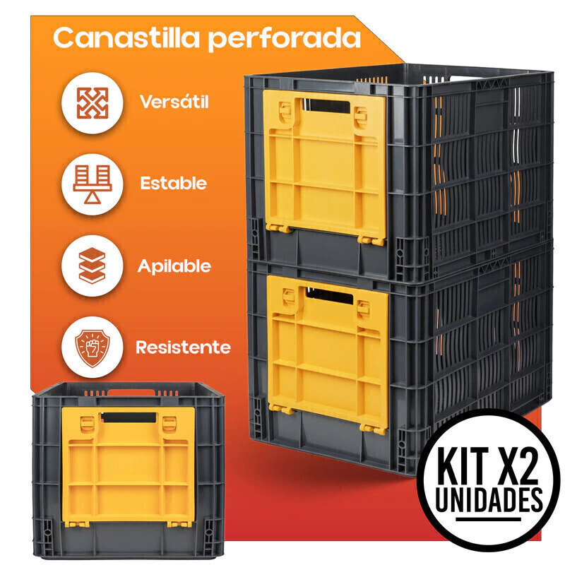 Optimiza tu sistema de almacenamiento con acceso rápido, ventilación y máxima eficiencia gracias al Set de 2 Canastillas Plásticas Multiusos con Ventana Frontal Perforada. Su diseño práctico con ventana abatible permite manipular el contenido sin desmontar la pila, mientras que su estructura perforada favorece la visibilidad y circulación del aire. Una solución perfecta para entornos industriales, logísticos o comerciales que requieren orden, resistencia y funcionalidad.