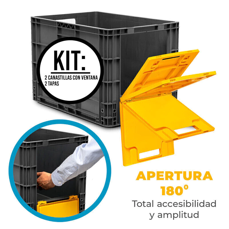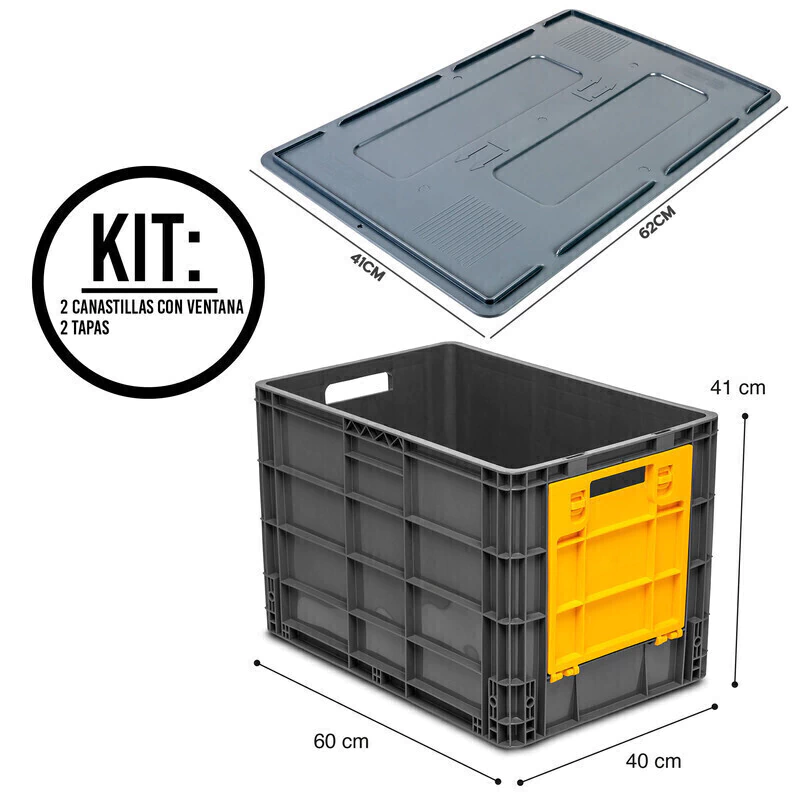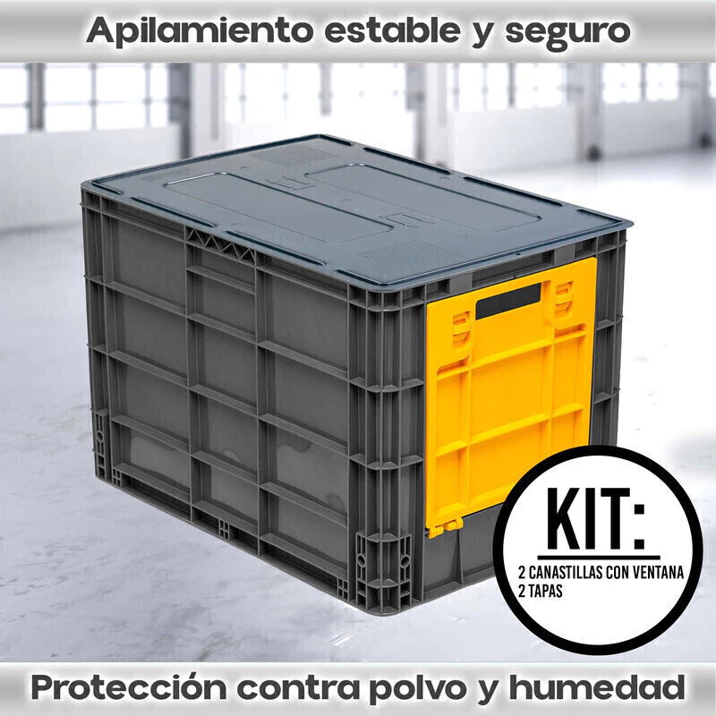 Set x2 Canastillas Plásticas Apilables con Ventana + Tapas