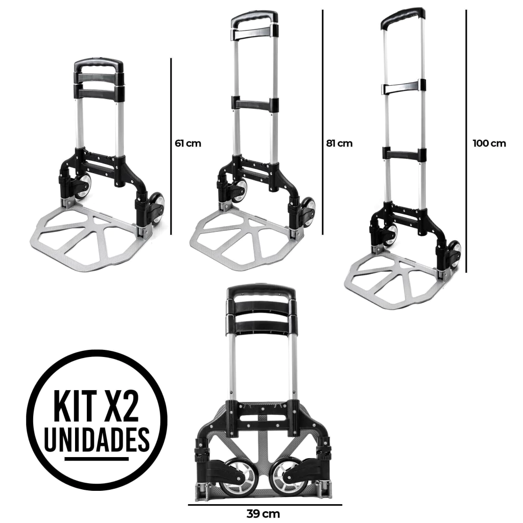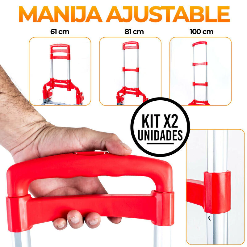 Set x2 Carro de Carga Manual, Plegable y Ajustable