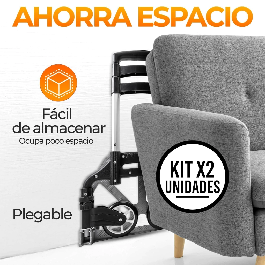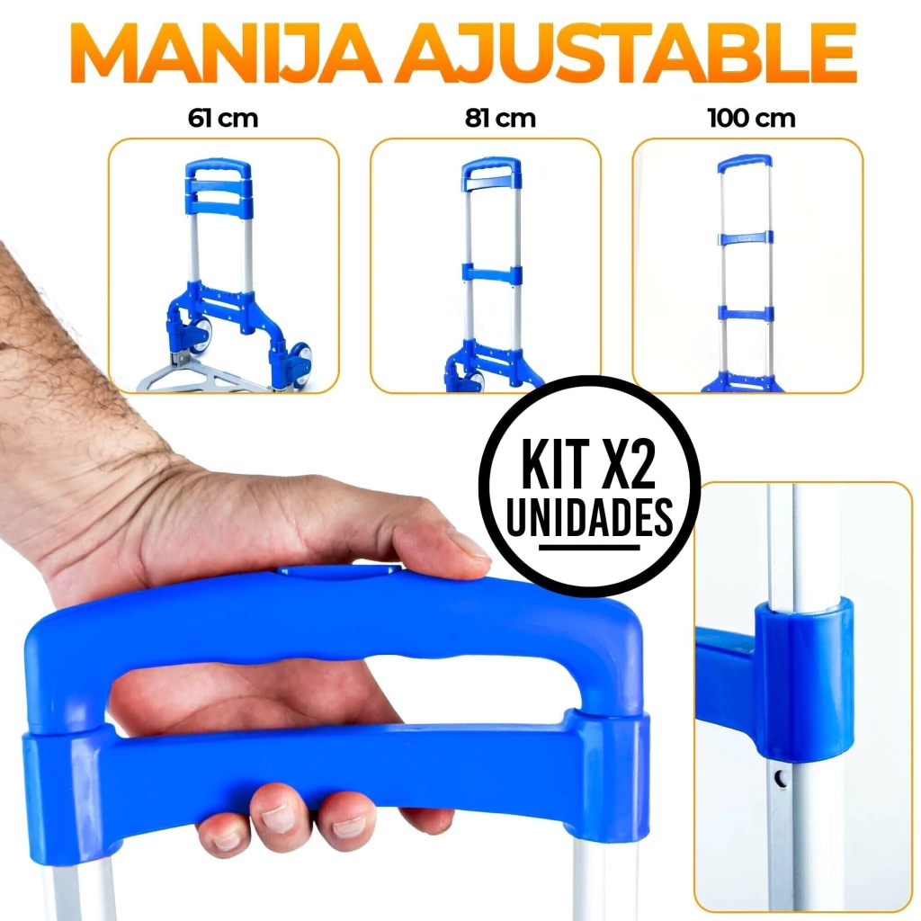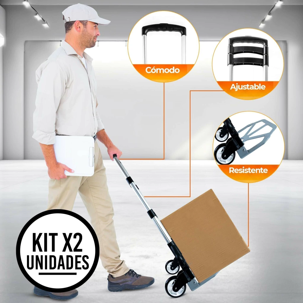 ¡Duplica la practicidad y versatilidad con este Set de 2 Carros de Carga Manual, Compactas, Plegables y Ajustables! Diseñados para facilitar tus tareas de transporte, estos carros son ideales para el hogar, el trabajo o viajes, ofreciendo una solución eficiente y cómoda para mover tus cargas.
