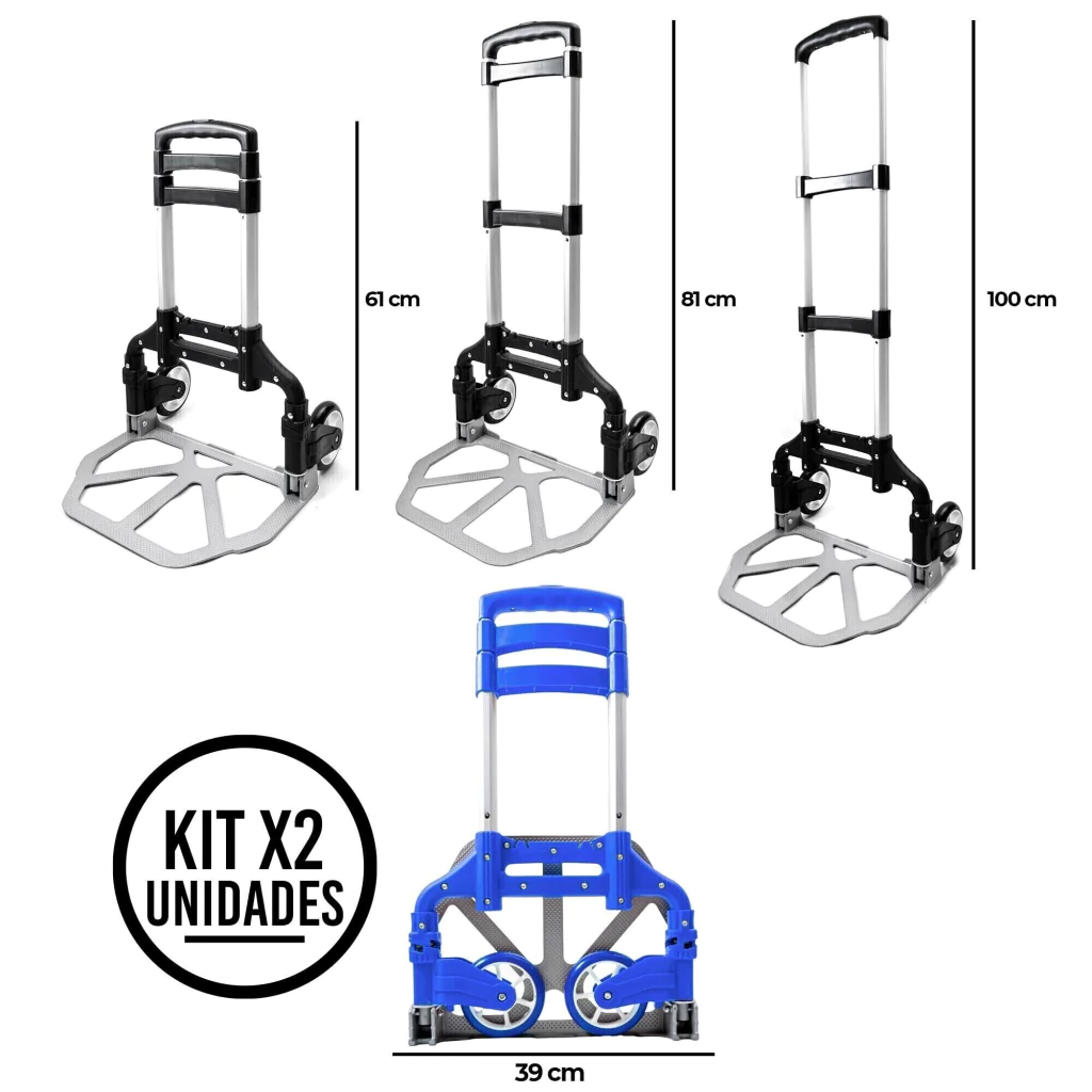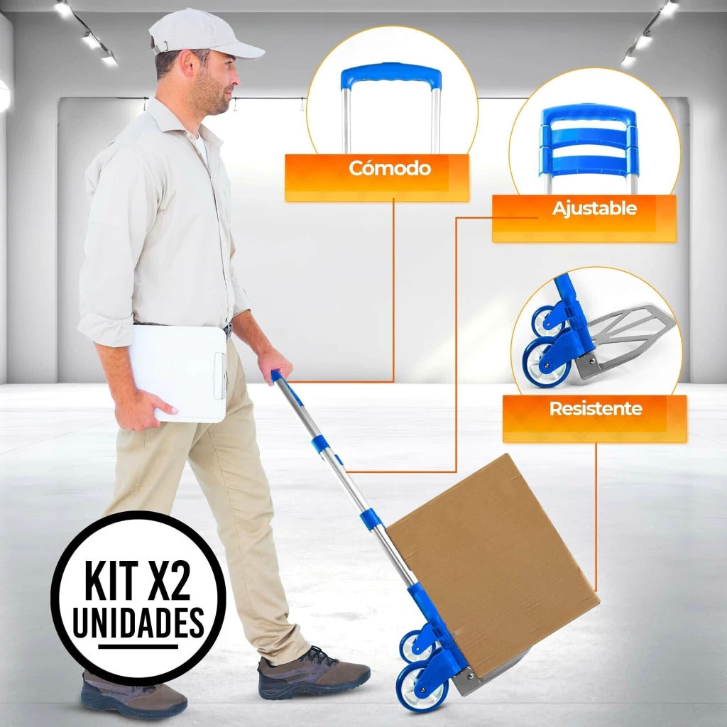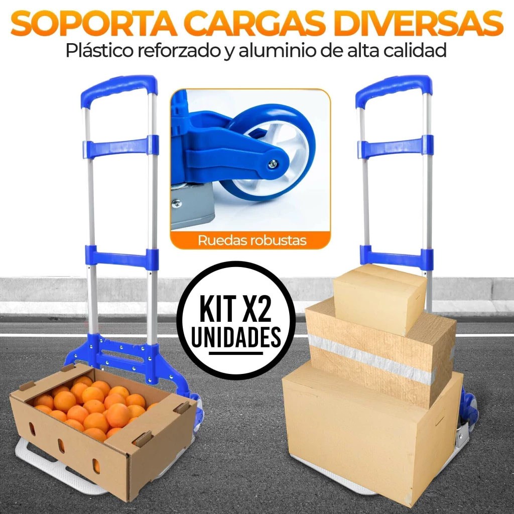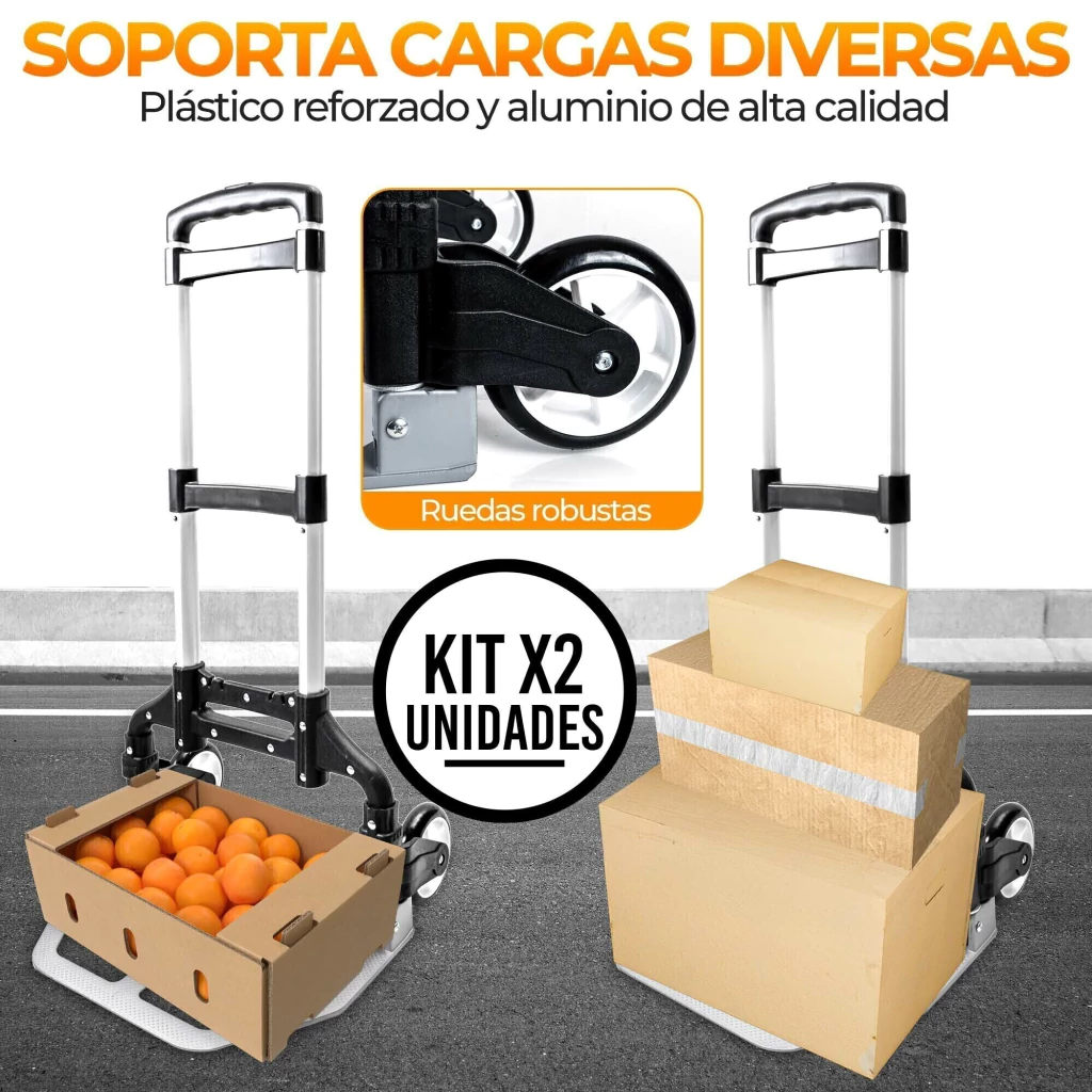 ¡Duplica la practicidad y versatilidad con este Set de 2 Carros de Carga Manual, Compactas, Plegables y Ajustables! Diseñados para facilitar tus tareas de transporte, estos carros son ideales para el hogar, el trabajo o viajes, ofreciendo una solución eficiente y cómoda para mover tus cargas.
