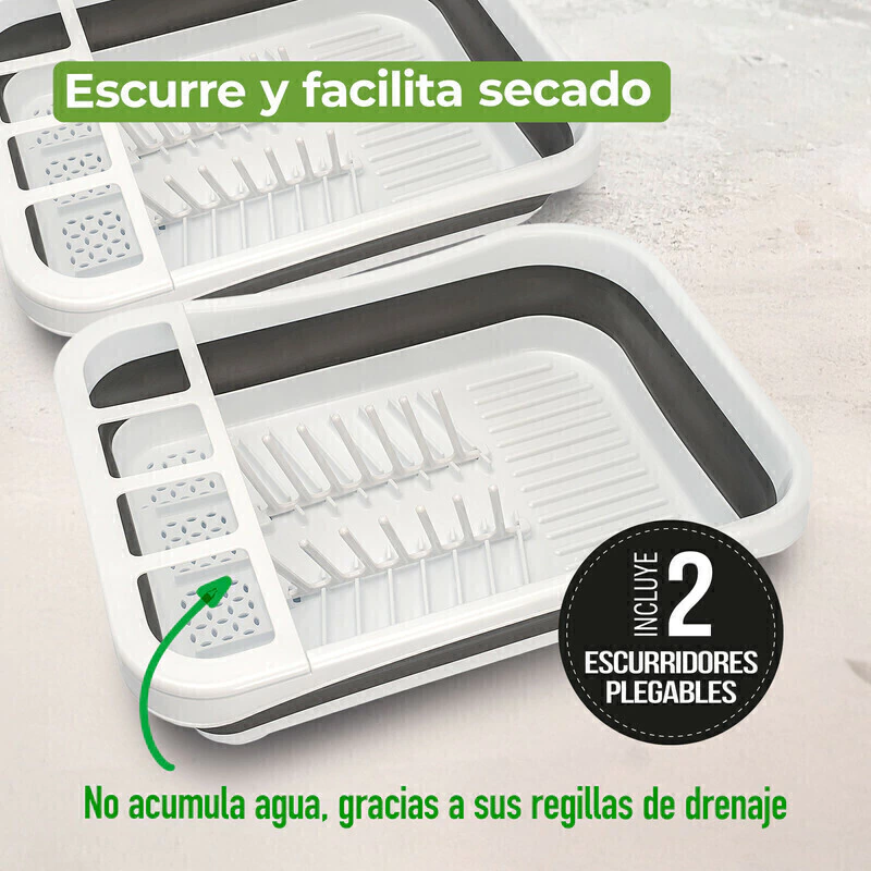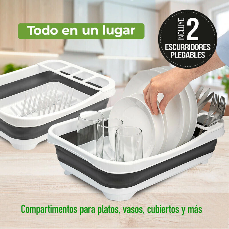 Set x2 Escurridor de Platos Plegable con Drenaje y Compartimentos