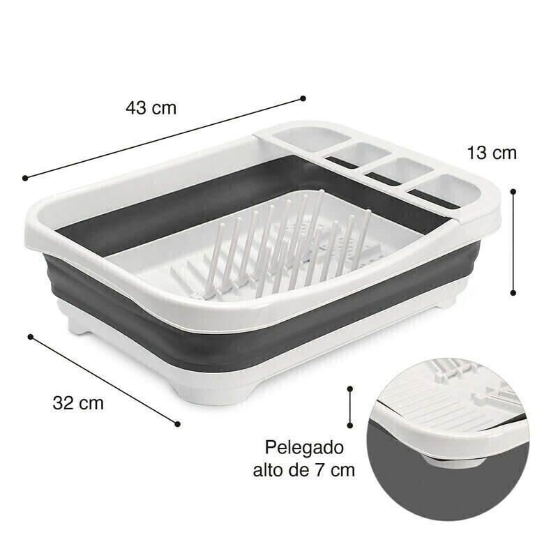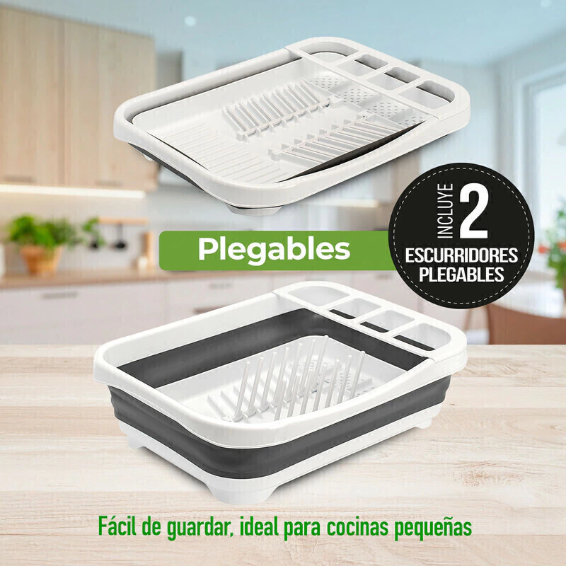 2 escurridores de platos plegables con compartimentos y sistema de drenaje.