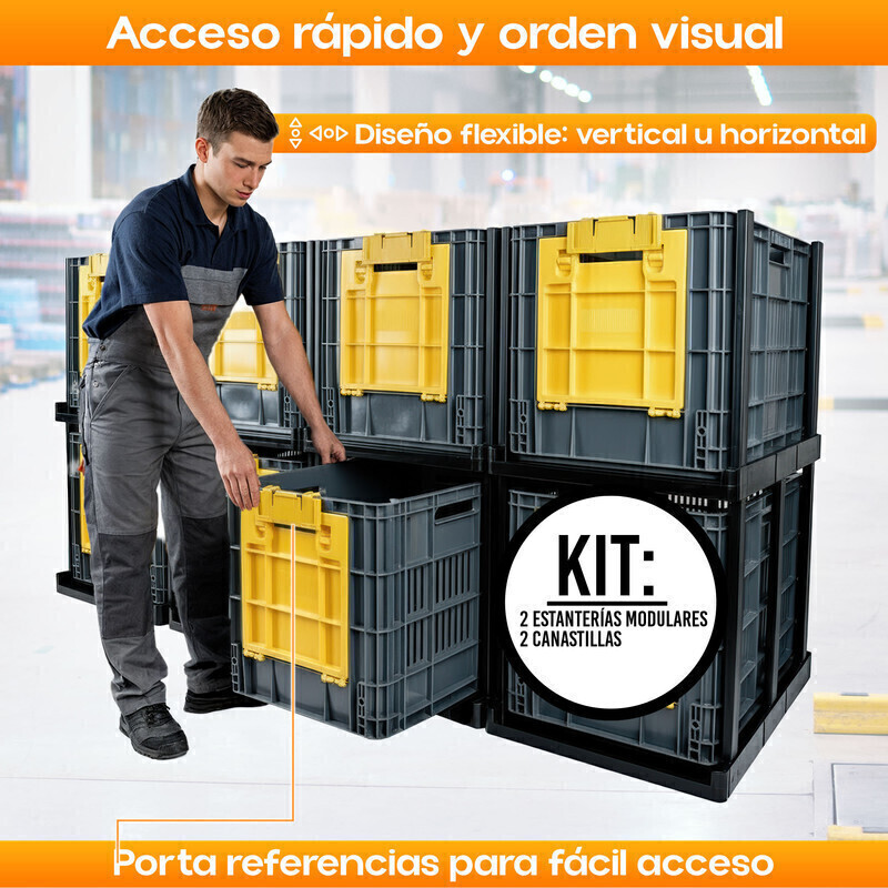 Dale orden, visibilidad y eficiencia a tu espacio de trabajo con el Set x2 Estantería Modular con Canastilla Perforada y Ventana Frontal, una solución práctica, resistente y expandible que se adapta a tus necesidades de almacenamiento. Ideal para talleres, bodegas o comercios, ofrece acceso rápido, excelente ventilación y clasificación visible.