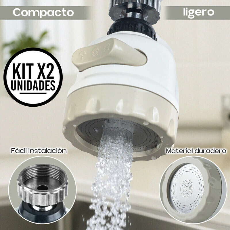 Set x2 Grifo Ahorrador de Agua Giratorio con Adaptador Universal