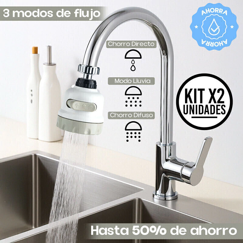¡Doble ahorro y máxima comodidad para tu cocina o baño! Con el Set x2 Grifo Ahorrador de Agua Giratorio con Adaptador Universal, transforma tus grifos convencionales en sistemas eficientes y flexibles. Su cabezal giratorio de 360° te permite dirigir el agua exactamente donde la necesitas, mientras sus tres modos de flujo se adaptan a cualquier tarea: desde un enjuague suave hasta un chorro potente. Perfecto para mejorar la funcionalidad y reducir el consumo de agua en cada uso.