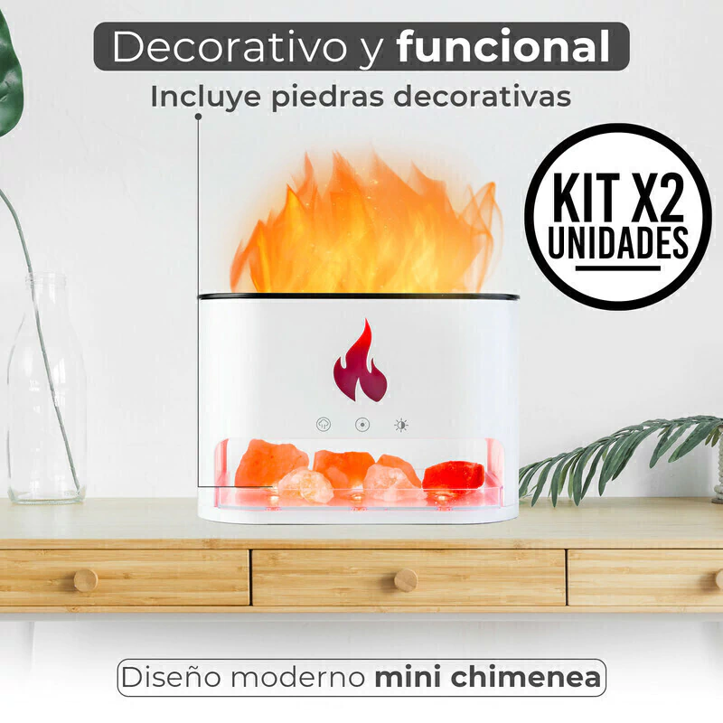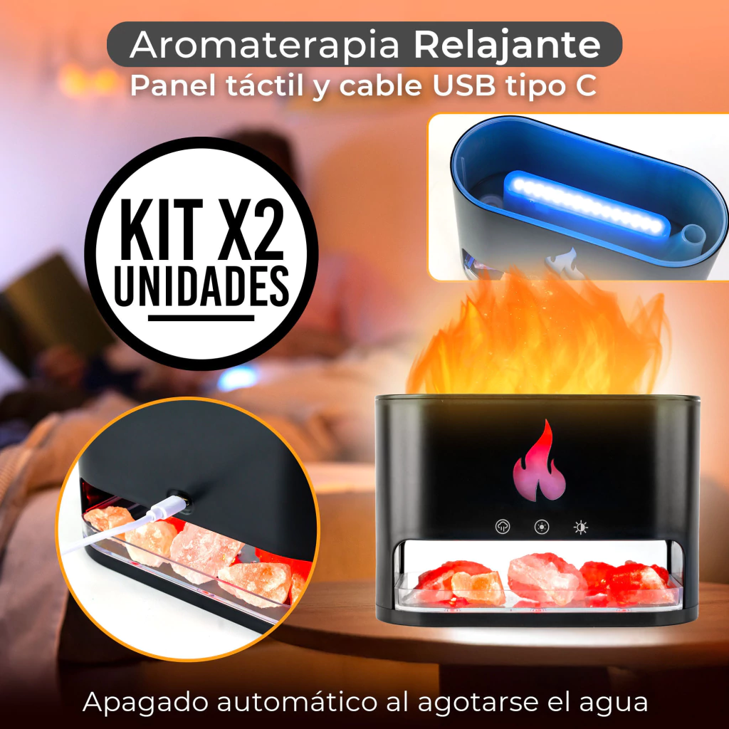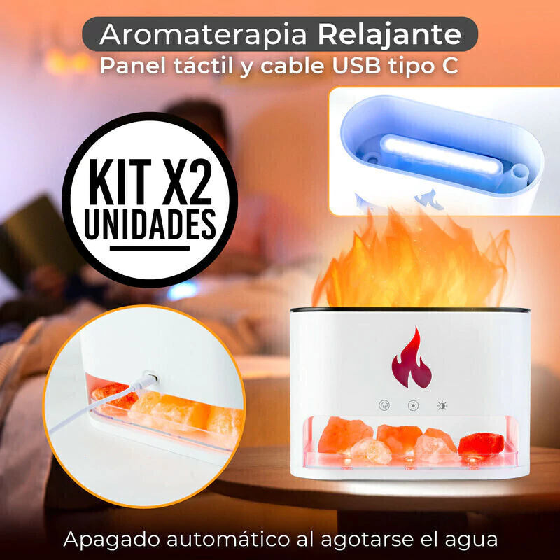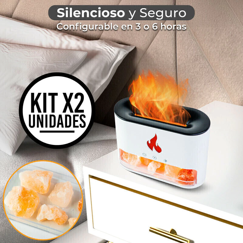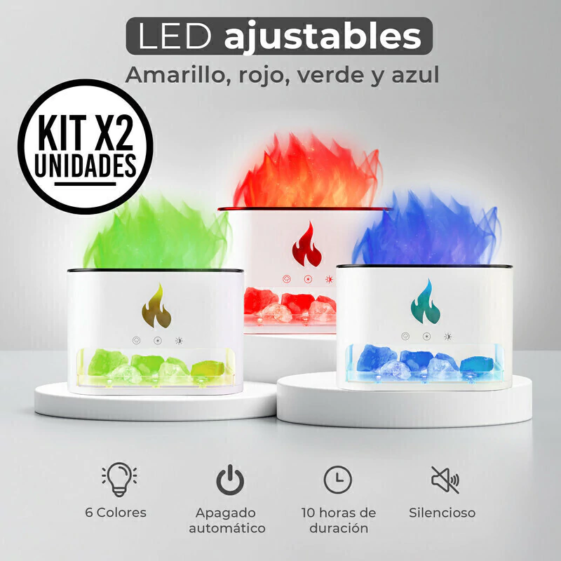 Set x2 Humidificadores y Difusores de Aromas con Efecto de Llama y Luces LED
