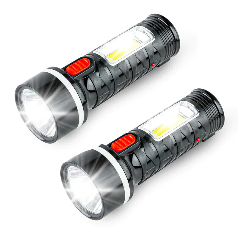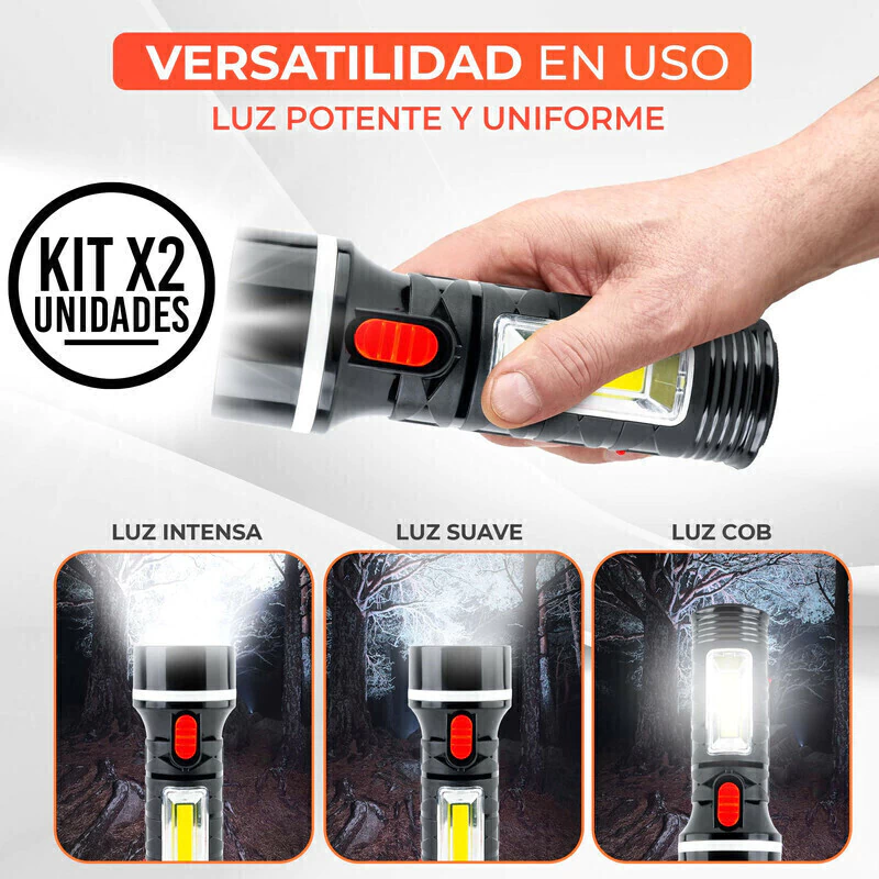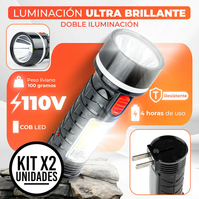 Set x2 Linterna Recargable LED COB Portátil con Enchufe Integrado: Iluminación Doble para Cada Momento