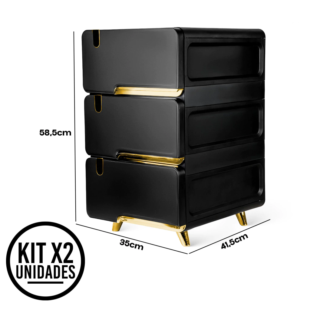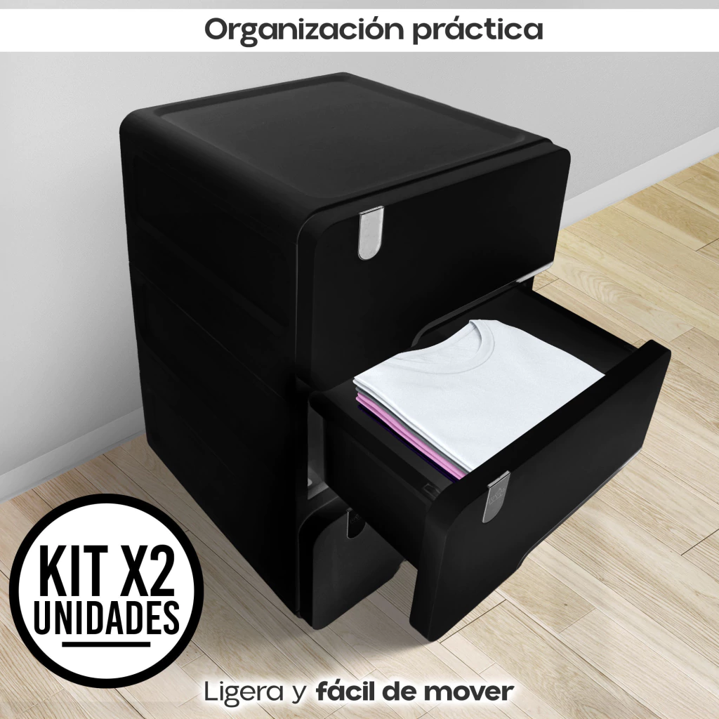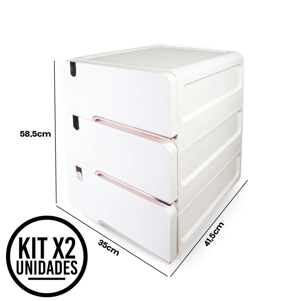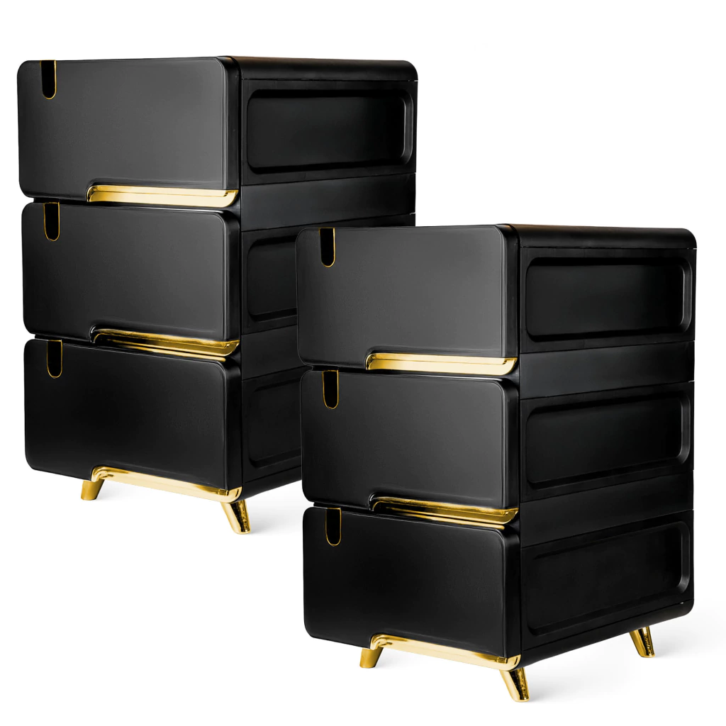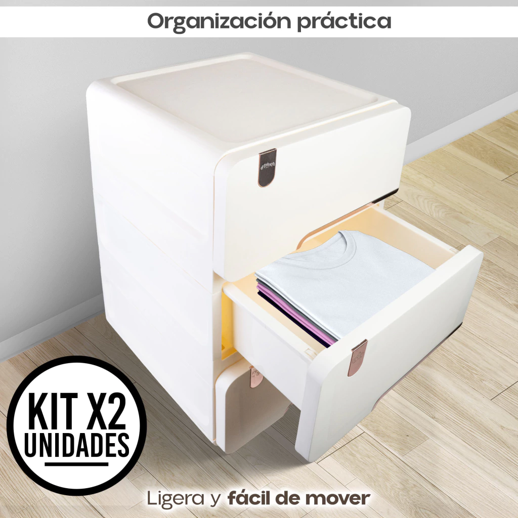 Set x2 Mesas de Noche Beige de 3 Cajones Moderna Plástico Resistente: