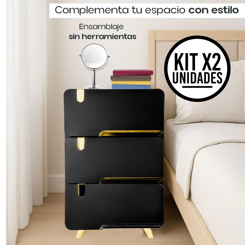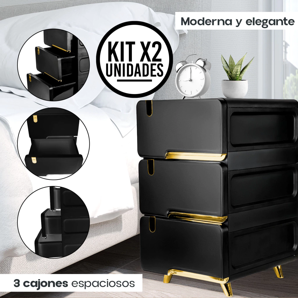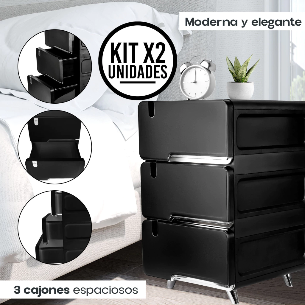 ¡Transforma tu habitación con el Set x2 Mesas de Noche Beige de 3 Cajones Moderna Plástico Resistente y disfruta de un espacio más elegante, ordenado y funcional! ¡Adquiérelo hoy mismo y da el primer paso hacia un hogar más práctico y sofisticado!