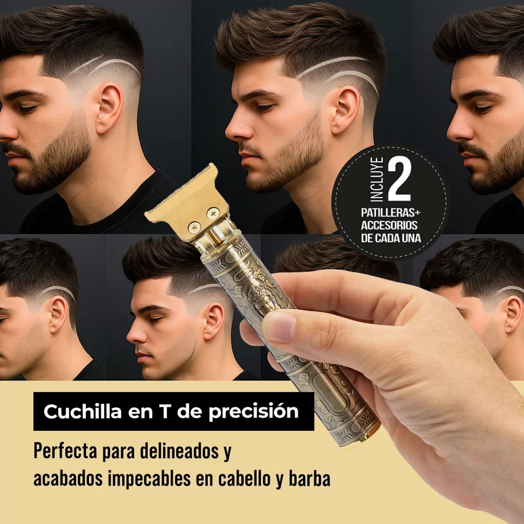 - Cuchilla en T de Precisión: Permite cortes al ras, delineados nítidos y acabados impecables.