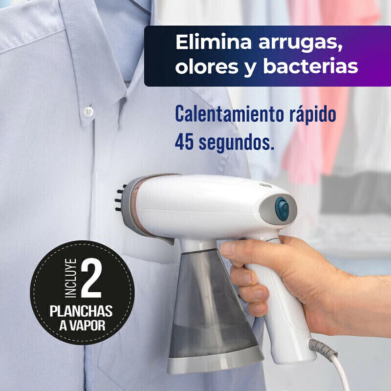 ¡Duplica la practicidad y mantén tus prendas siempre impecables! Con el Set x2 Plancha a Vapor Vertical Portátil 1155W Elimina Arrugas de la Ropa, disfrutarás de un planchado fácil, rápido y sin complicaciones en cualquier lugar. Su potente chorro de vapor elimina arrugas, olores y bacterias sin necesidad de tabla, ideal para el hogar, viajes o emergencias de último momento.