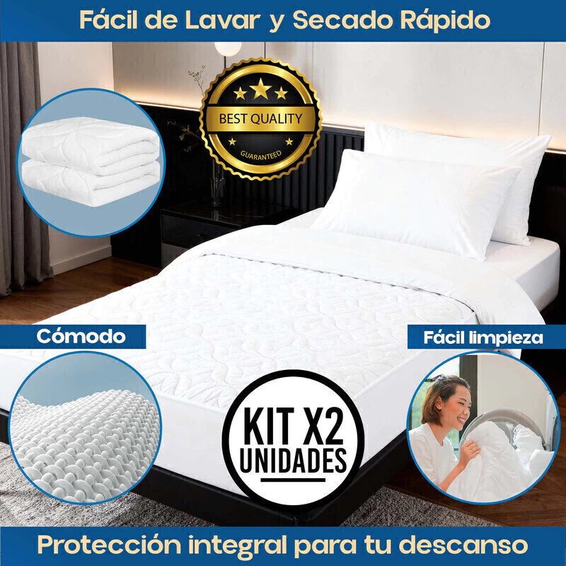 ¡No pierdas la oportunidad de proteger tu colchón con este set práctico y duradero! ¡Adquiérelo hoy mismo y asegura noches limpias, frescas y confortables para ti y tu familia!