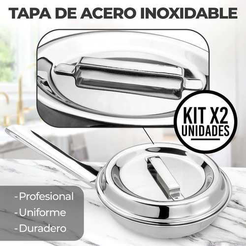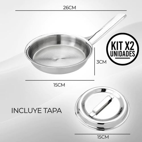 - Incluye: Cada sartén viene con su propia tapa de acero inoxidable con agarradera.
