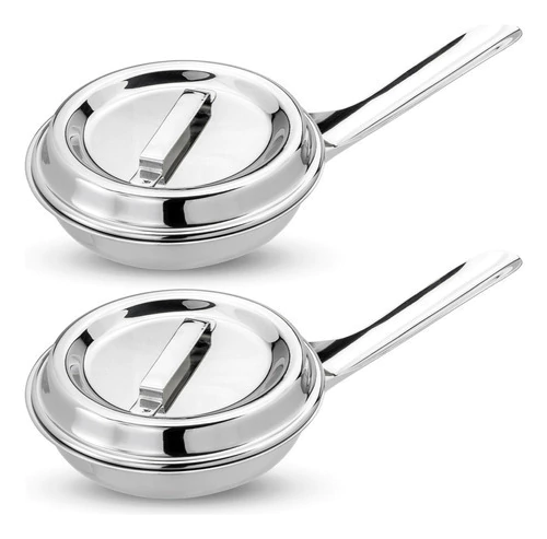 - 2 sartenes de acero quirúrgico 18/10, cada uno con su tapa de acero inoxidable.