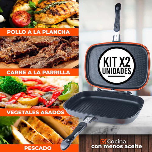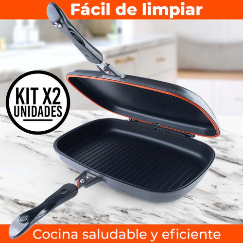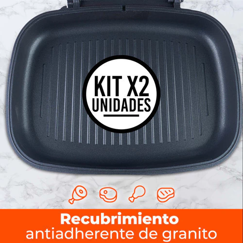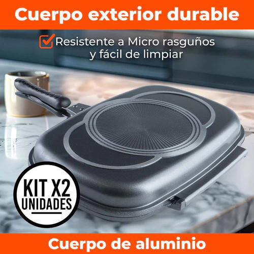 - Diseño de doble cara que permite cocinar dos platillos simultáneamente.