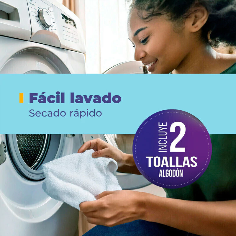 Incluye dos Toallas de Mano 100% Algodón, ideales para tener siempre una toalla limpia a la mano, ya sea en casa o en el gimnasio.