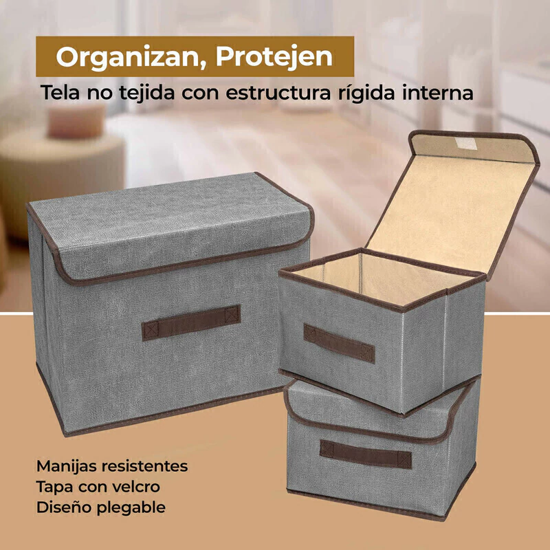 Con el Set x3 Cajas Organizadoras Ropa Plegables con Tapa y Manijas disfrutarás de un hogar más ordenado y con estilo. Aprovecha su practicidad y versatilidad para organizar cada rincón de tu casa sin complicaciones. ¡Haz tu pedido y transforma tus espacios hoy mismo!