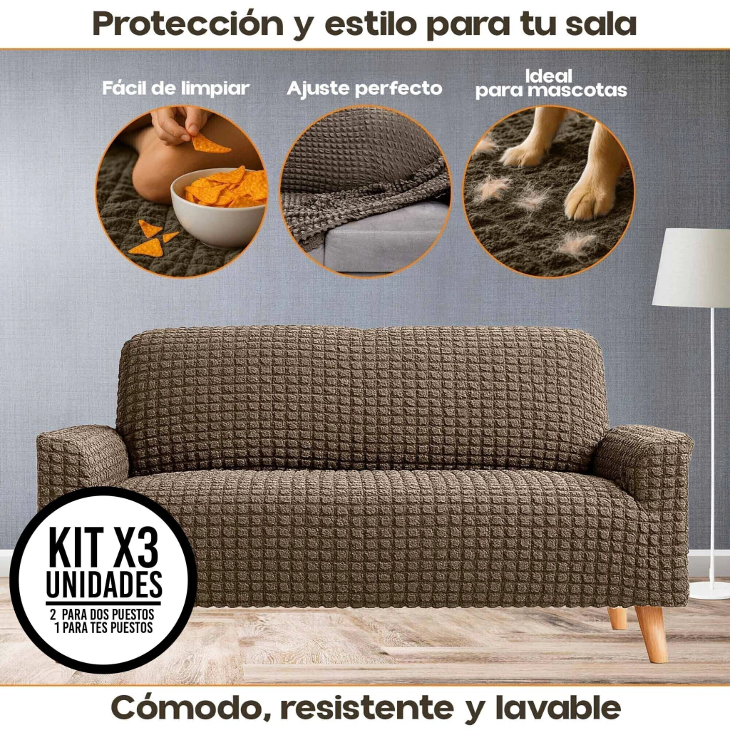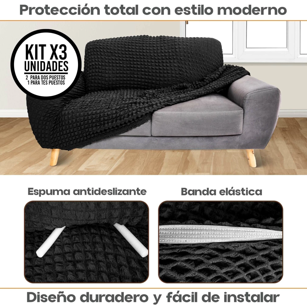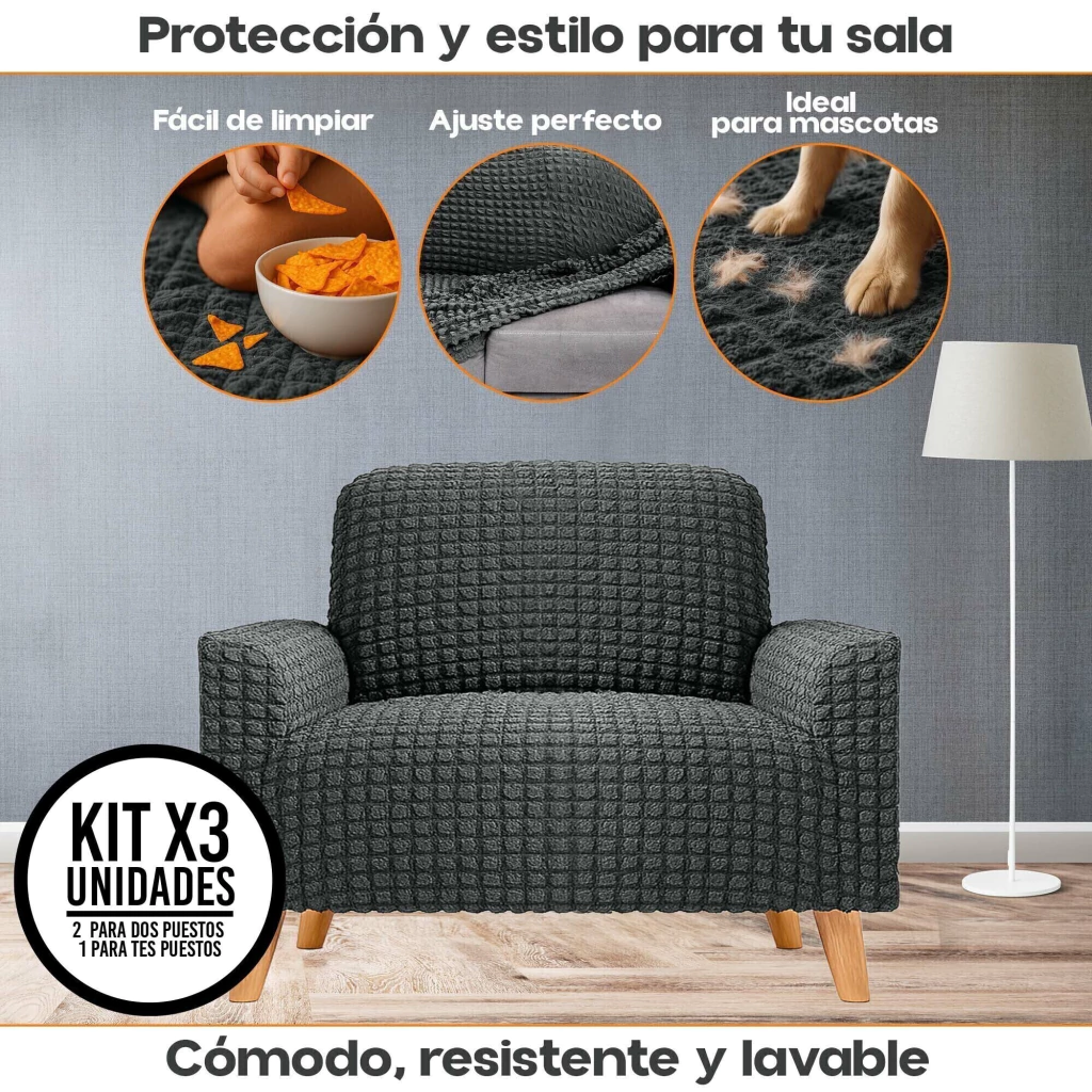 Set x3 Fundas Elásticas Sofá: 2 Dos Puestos + 1 Tres Puestos