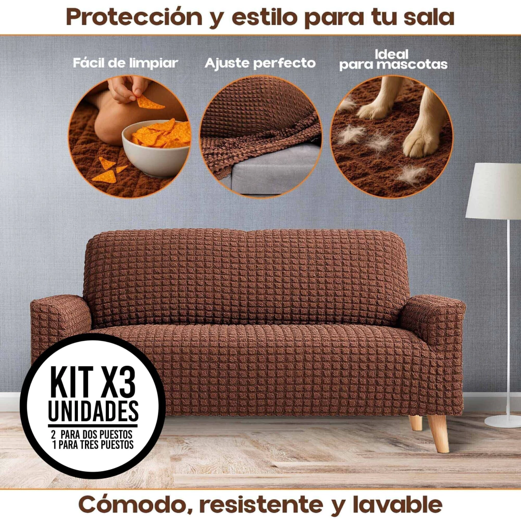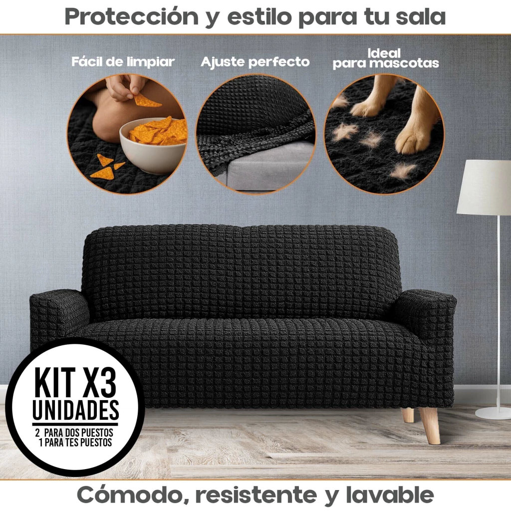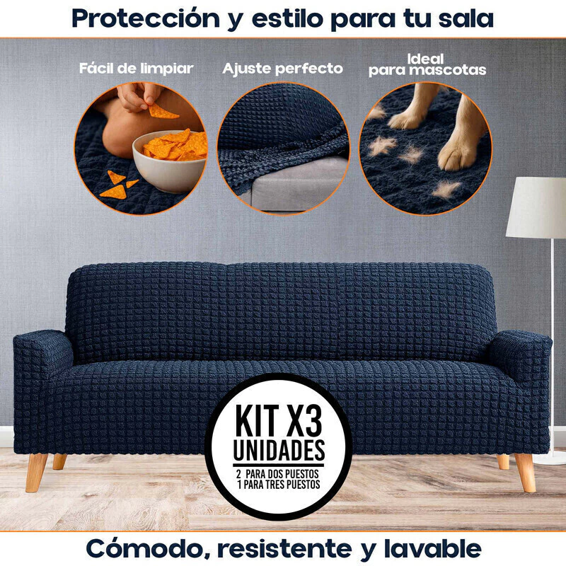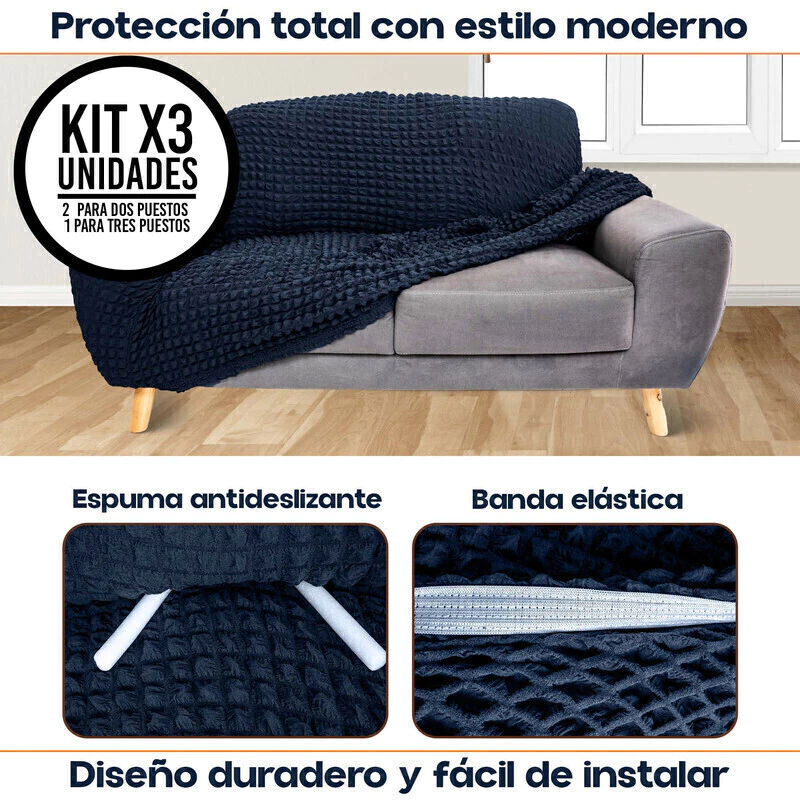 Set x3 Fundas Elásticas Sofá: 2 Dos Puestos + 1 Tres Puestos