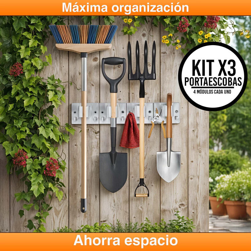 Con el Set x3 de Porta Escobas y Traperos con 4 Sujetadores y 8 Ganchos incluidos cada uno, mantendrás cualquier espacio limpio, ordenado y seguro. ¡Pide el tuyo hoy y disfruta de máxima organización!