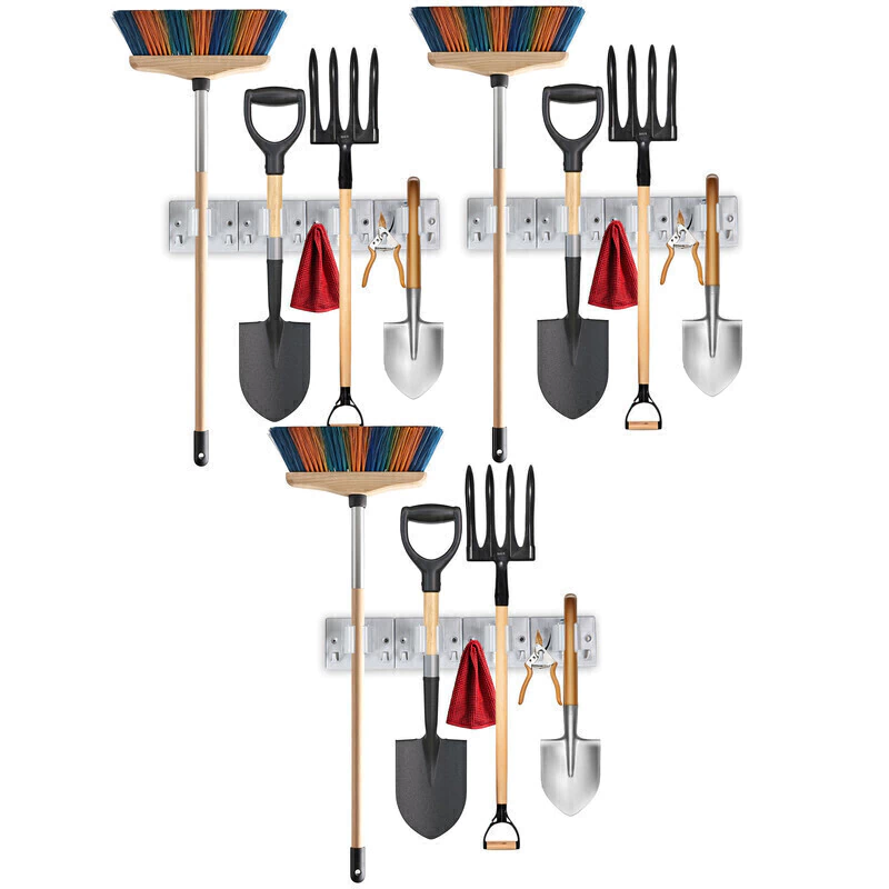 Set x3 Porta Escobas y Traperos con 4 Sujetadores y 8 Ganchos incluidos cada uno.