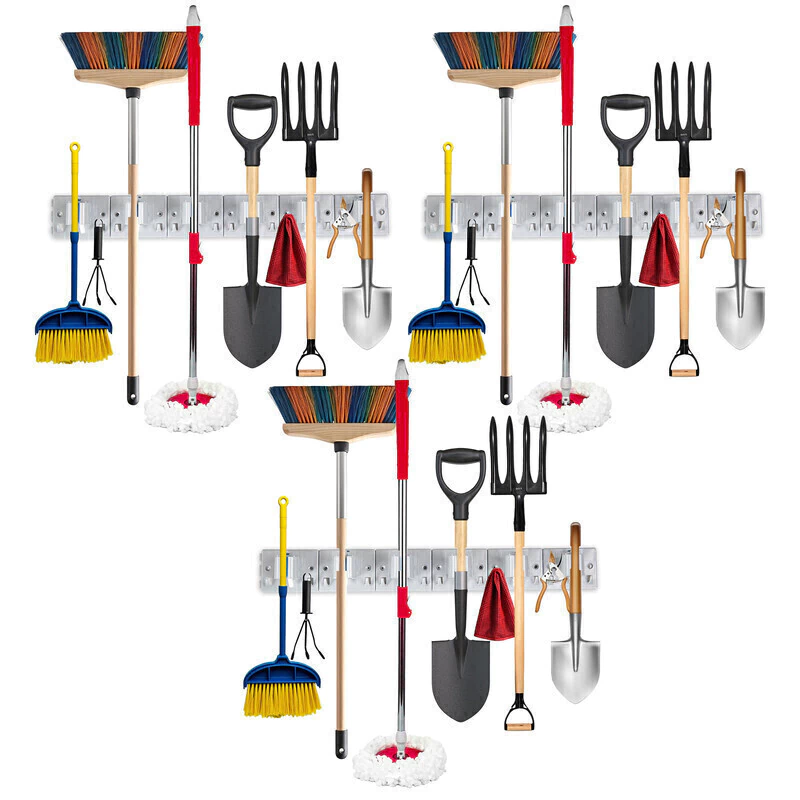 Set x3 PortaEscobas y Traperos con 6 Sujetadores y 12 Ganchos incluidos cada uno