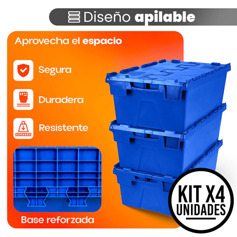 Set x4 Caja de Seguridad Plástica 40x29x20 cm con Tapa Abisagrada