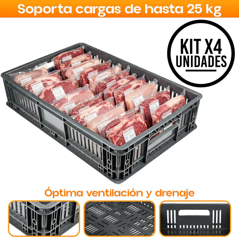 Set x4 Canastillas Plásticas Industriales 60x40x13cm