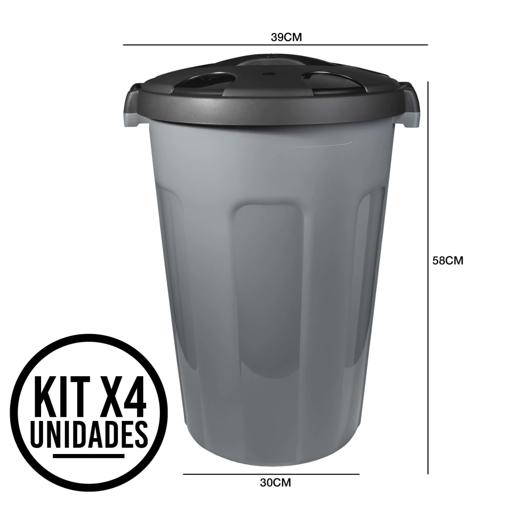 4 canecas plásticas de 50 litros con cuerpo en polietileno (LDPE)