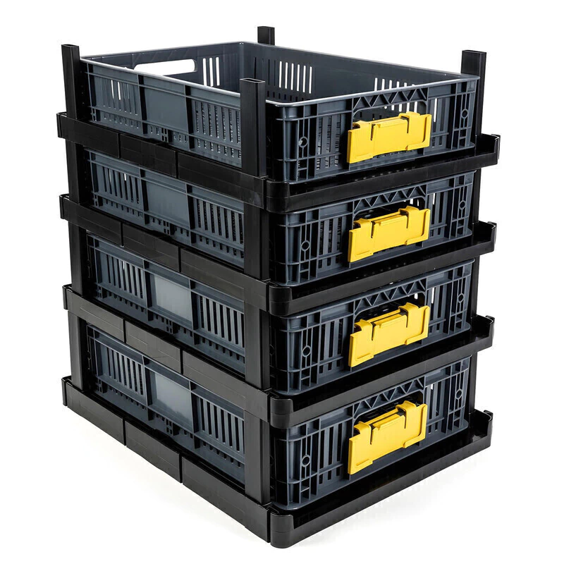 4 canastillas plásticas perforadas color gris – 60 x 40 x 13 cm