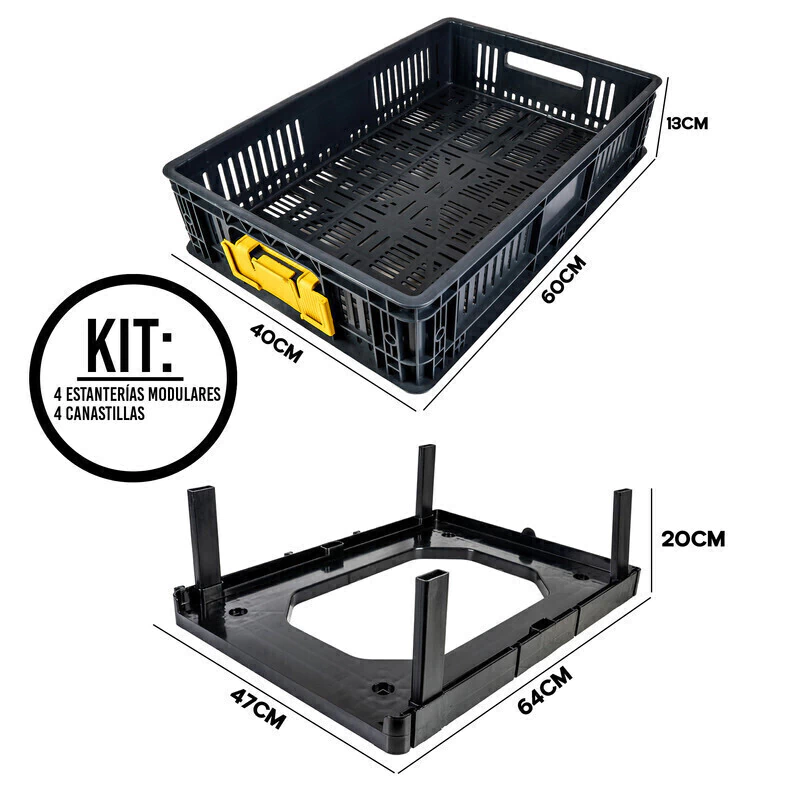 4 bases plásticas modulares color negro – 64 x 47 x 5 cm