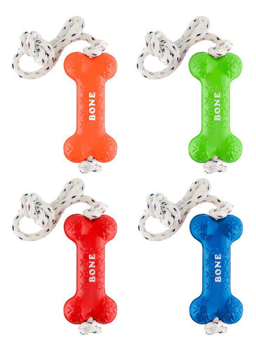 ¿Tienes un perro grande que necesita quemar energía y fortalecer su vínculo contigo? Presentamos un paquete de 4 Juguetes con Hueso de Goma y Lazo interactivo, disponibles en colores azul, naranja, rojo y verde. Ideales para juegos de lanzar y recoger, estos huesos para perros son la revolución en juguetes para perro.