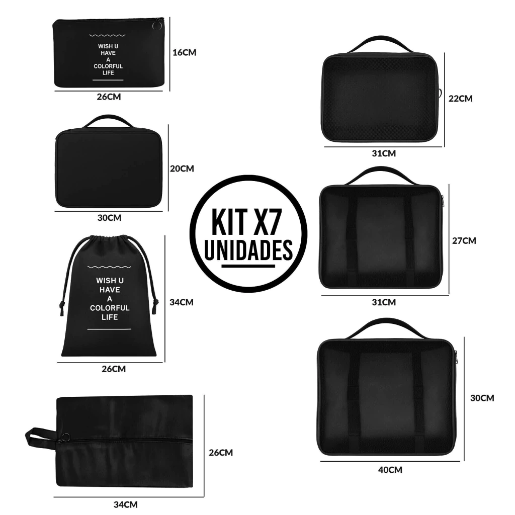 Set x7 Bolsas Organizadoras para Maleta, Cubos de Viaje Prácticos, Diseño Compacto y Liviano.