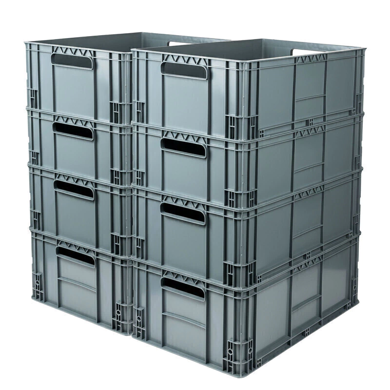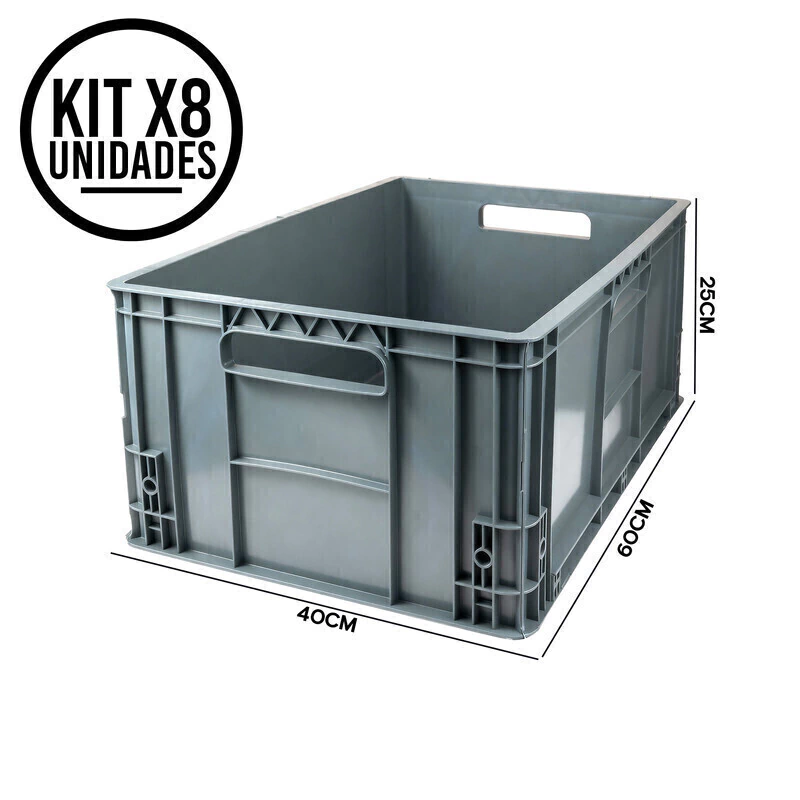 8 Canastillas Plásticas Tapadas 60x40x25cm (color gris, con fondo y paredes completamente cerradas)
