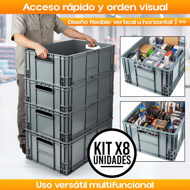 ¡Optimiza tu espacio, protege tu mercancía y mejora tu logística con el Set x8 Canastillas Plásticas Tapadas Industriales! Una inversión sólida para quienes necesitan soluciones funcionales y resistentes. ¡Adquiérelas ahora y transforma tu sistema de almacenamiento!