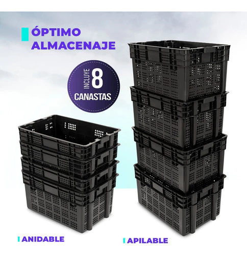 - Optimización del Espacio: Cada canasta puede soportar hasta 25 kg y se puede apilar hasta 250 kg, permitiéndote maximizar el uso del espacio vertical.