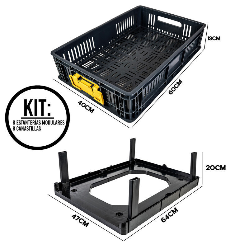 8 bases plásticas modulares color negro (64 x 47 x 5 cm)