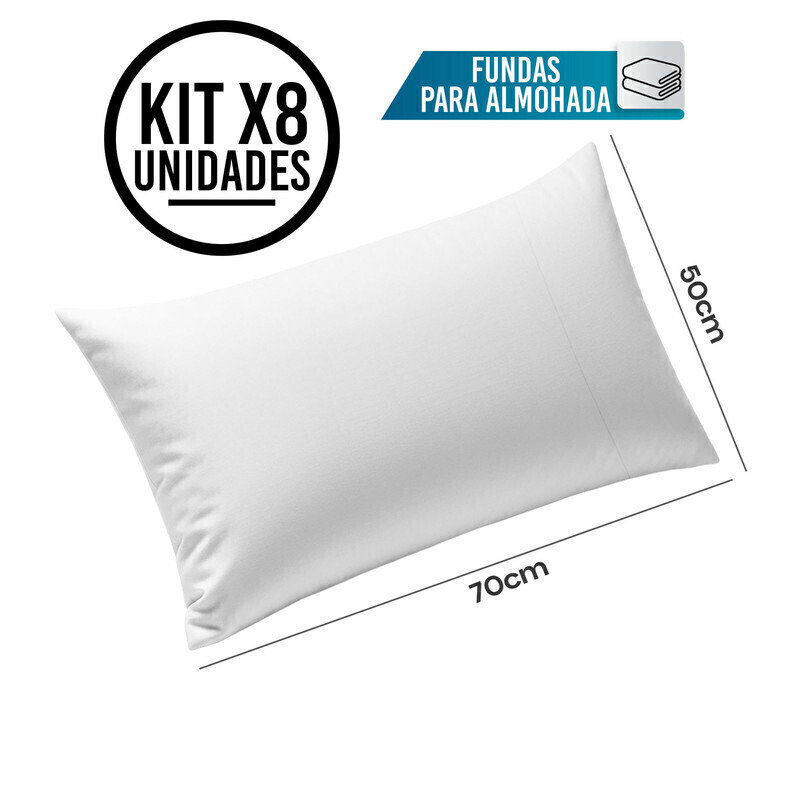 Dale un nuevo aire a tu cama con el Set x8 Fundas de Almohadas 180 Hilos Blancas Algodón 70x50, la opción perfecta para renovar todas tus almohadas con estilo, confort y practicidad. Tener fundas en buen estado no solo mejora la presentación de tu cama, también protege tus almohadas y contribuye a un descanso más higiénico. Este set completo es ideal para renovar todas de una vez, ya sea en tu hogar o en alojamientos.
