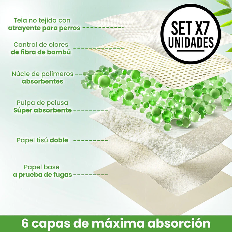 Las Toallas Acostumbradoras x7 Eco Bamboo - Tapete para Mascotas son una solución práctica, higiénica y amigable con el medio ambiente para entrenar a tu perro. Cada paquete incluye 7 unidades, ideales para mantener la limpieza de tu hogar mientras le enseñas a tu mascota dónde hacer sus necesidades. Hechas con fibras de bambú, ofrecen absorción, frescura y sostenibilidad.