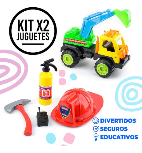 - Set de Bombero: Estimula la inteligencia emocional y habilidades cognitivas, incluye extintor, hacha, casco y radio, empaque 33x25x13 cm.